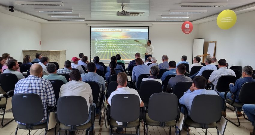 O encontro também debateu tecnologias de pulverização e os pontos de atenção no manejo. Participaram, ainda, como palestrantes, os pesquisadores do Fundecitrus Renato Bassanezi e Marcelo Miranda.